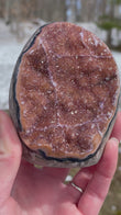 Rainbow Amethyst typically appears as clusters or points in deep violet to lavender shades with shimmering rainbow flashes visible when turned in the light. Each piece is one-of-a-kind with dazzling crystal faces.