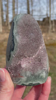 Rainbow Amethyst typically appears as clusters or points in deep violet to lavender shades with shimmering rainbow flashes visible when turned in the light. Each piece is one-of-a-kind with dazzling crystal faces.